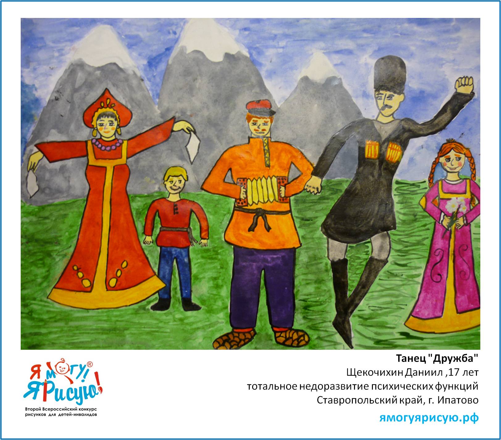 Даниил посмотрел праздничный концерт "Золотое моё Ставрополье". Покорил его детский народный ансамбль танца. Концертная программа сподвигла к созданию рисунка "Танец "Дружба"