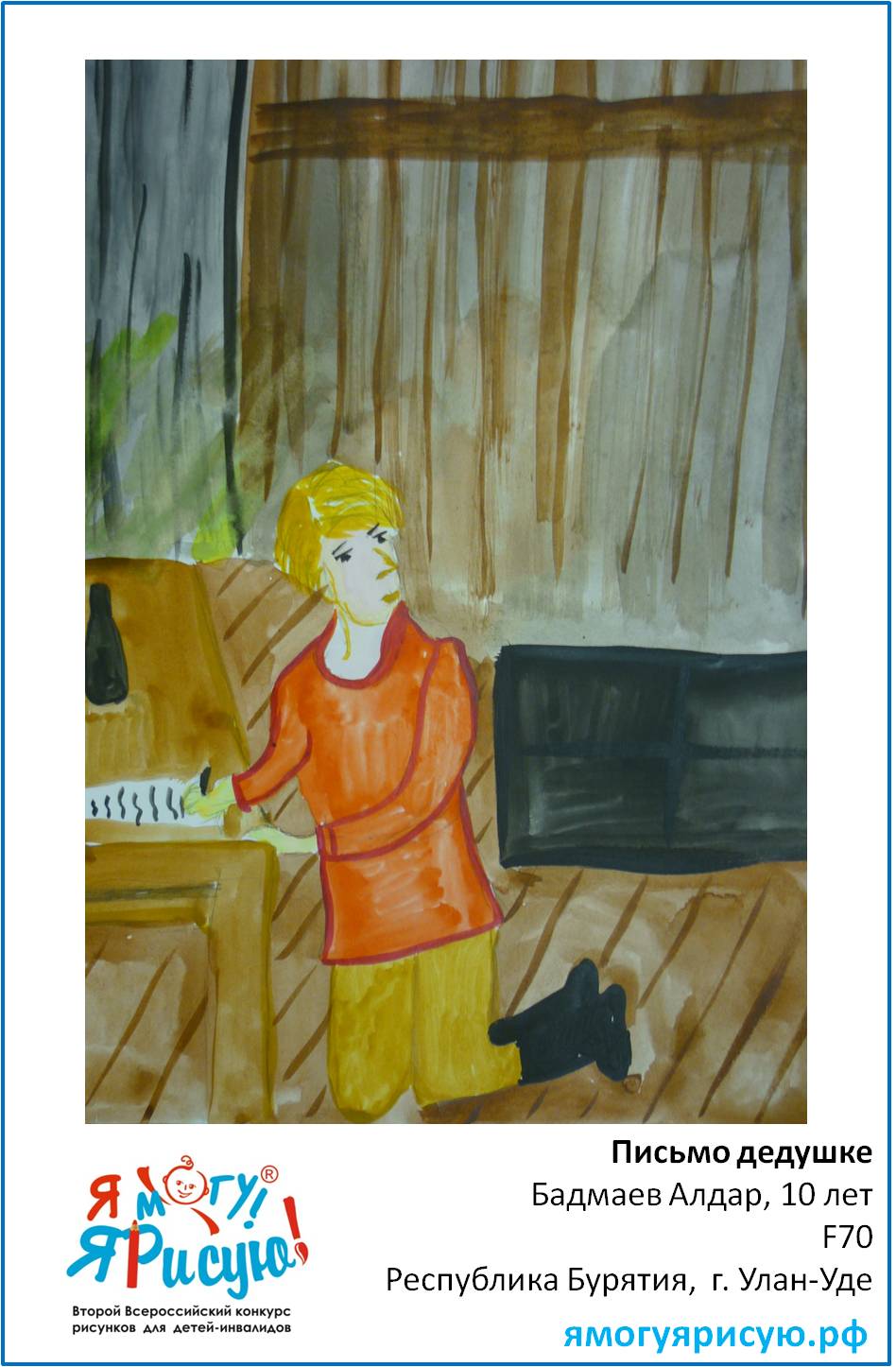 "Дети прочитали рассказ Антона Чехова "Ванька". Им стало жалко героя Ваню, Алдар захотел нарисовать рисунок, как Ваня пишет письмо."