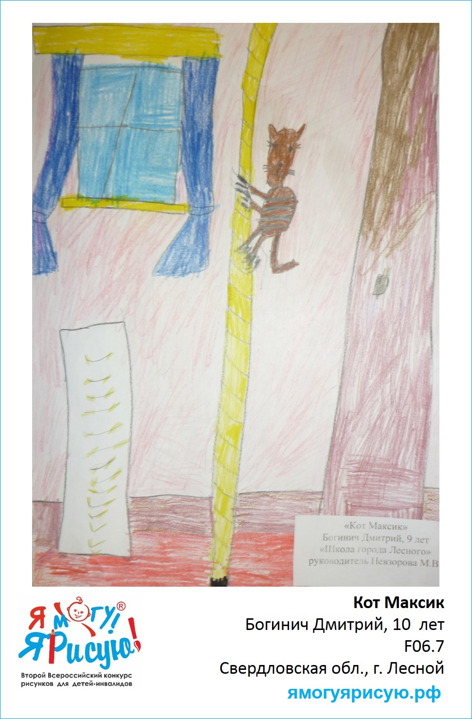 "На рисунке изображен домашний любимец Димы - котёнок Максик, лазающий по канату"