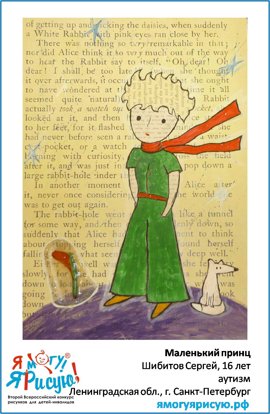 "Рисунок с элементами аппликации, на данную работу вдохновила схожесть образа Маленького принца с Серёжей.