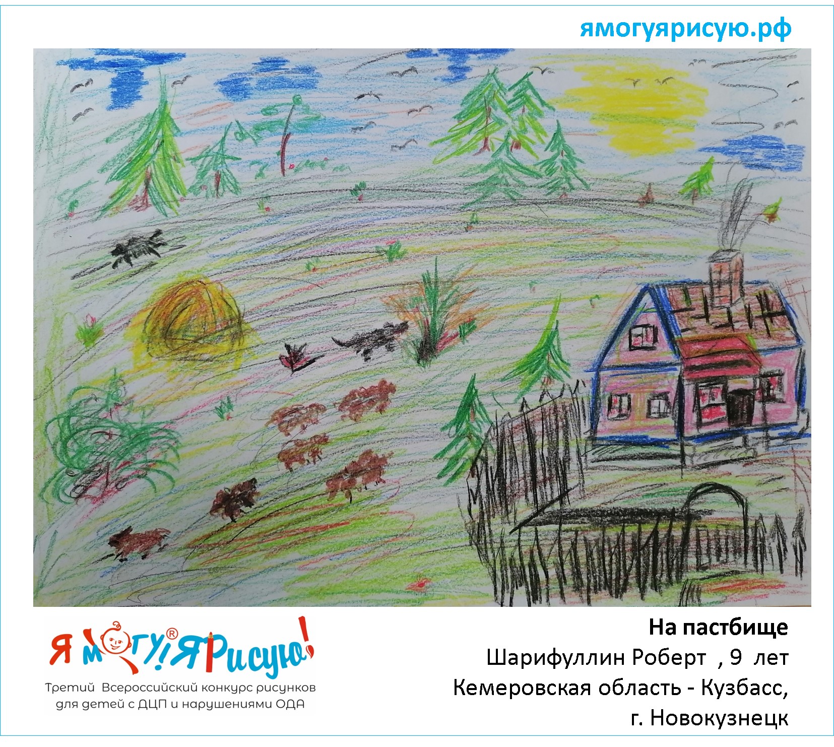 Мы живем в своём дома и держим коров, свиней, овец. Поэтому мне было легко представить образ , что я хочу нарисовать. Я каждый день помогаю по хозяйству. Вечером хожу на пастбище встречать наше стадо овец. Я смотрю как они гуляют на пастбище и щиплют травку , а вокруг их окружает красивая природа.