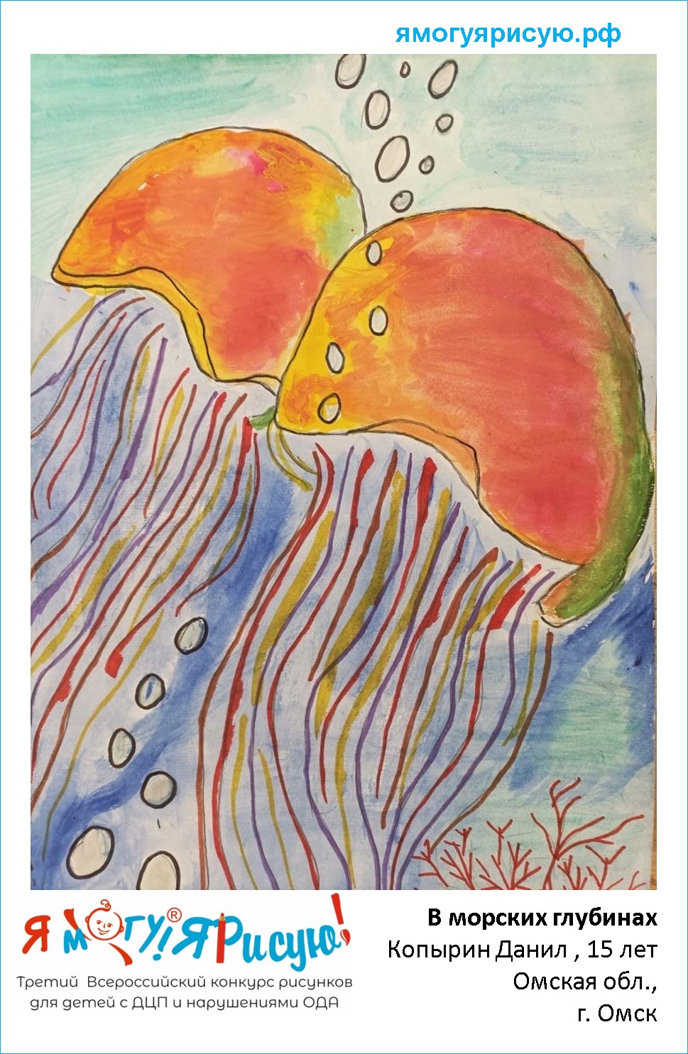 Данил с мамой были в океанариуме. Там видели огромных рыб пиракур, акул, морских коньков, рыбу-ежа, скатов и сомов всех размеров, и множество других зкзотических рыб. После этой поездки ему захотелось нарисовать рисунок «В морских глубинах».