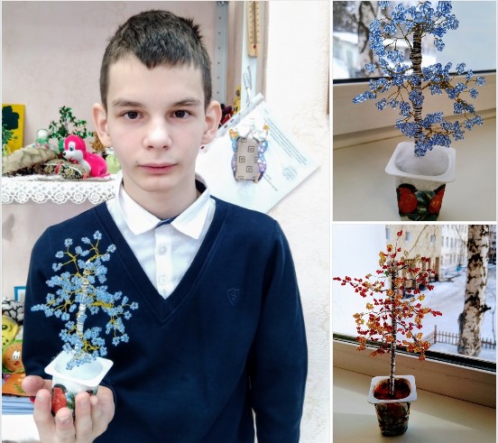 Захаров Станислав.Берёзка из бисера (осень, зима)