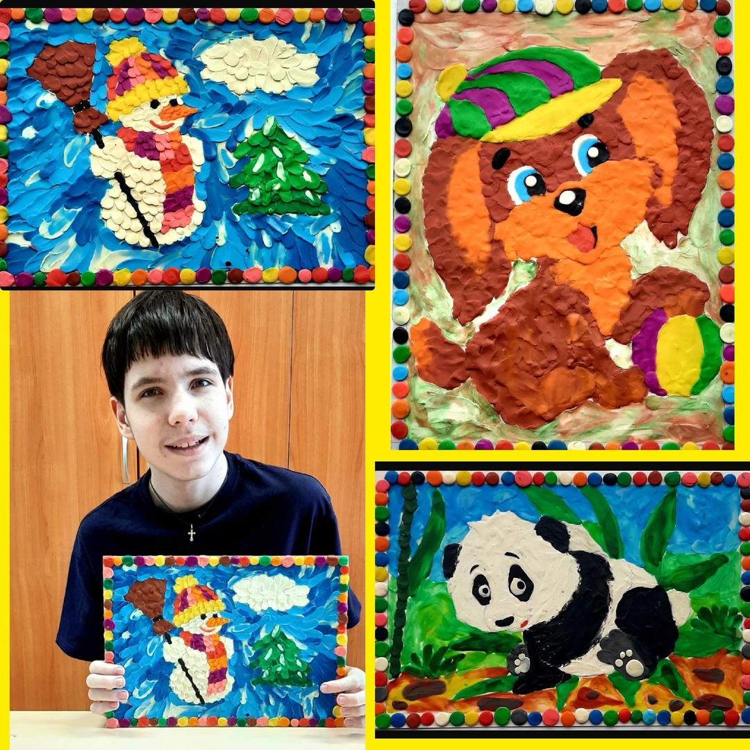 Мальчик очень любит лепить, с большим удовольствием выполняет работы.