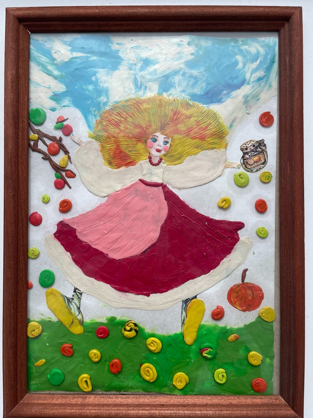 Пластилинография. Лепная картина на бумаге. Много мелких деталей. Использовала разные техники- сплющивание, раскатывание, вытягивание.